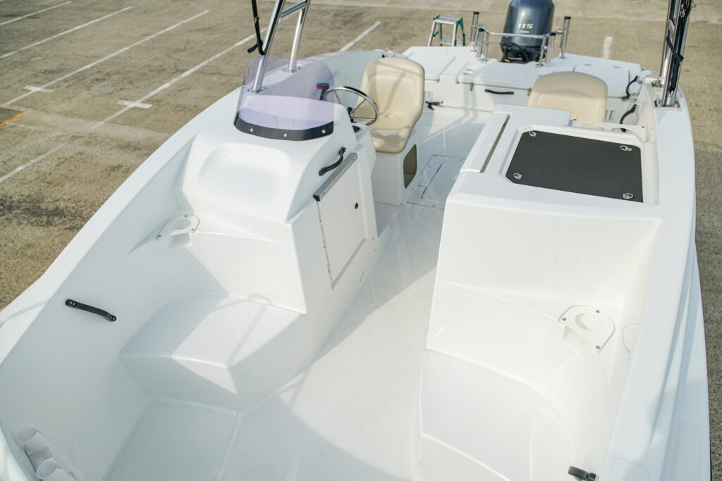 扱いやすいサイズながらワイドなハルがもたらす安定した走りで、釣りにクルージングにとマルチに活躍します。